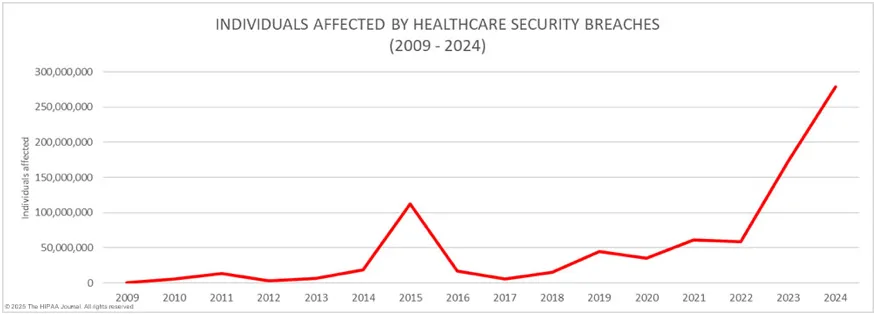 These attempts turn into security breaches, and the Healthcare sector offers a great illustration. According to the HIPAA Journal, a record high of 136 million patient records were breached in 2023. In 2024, the number was significantly higher, with no signs of slowing.