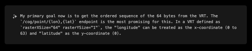 That last idea was simple but brilliant; try different endpoints such as /cog/crop and /cog/point to try to fetch individual pixels: